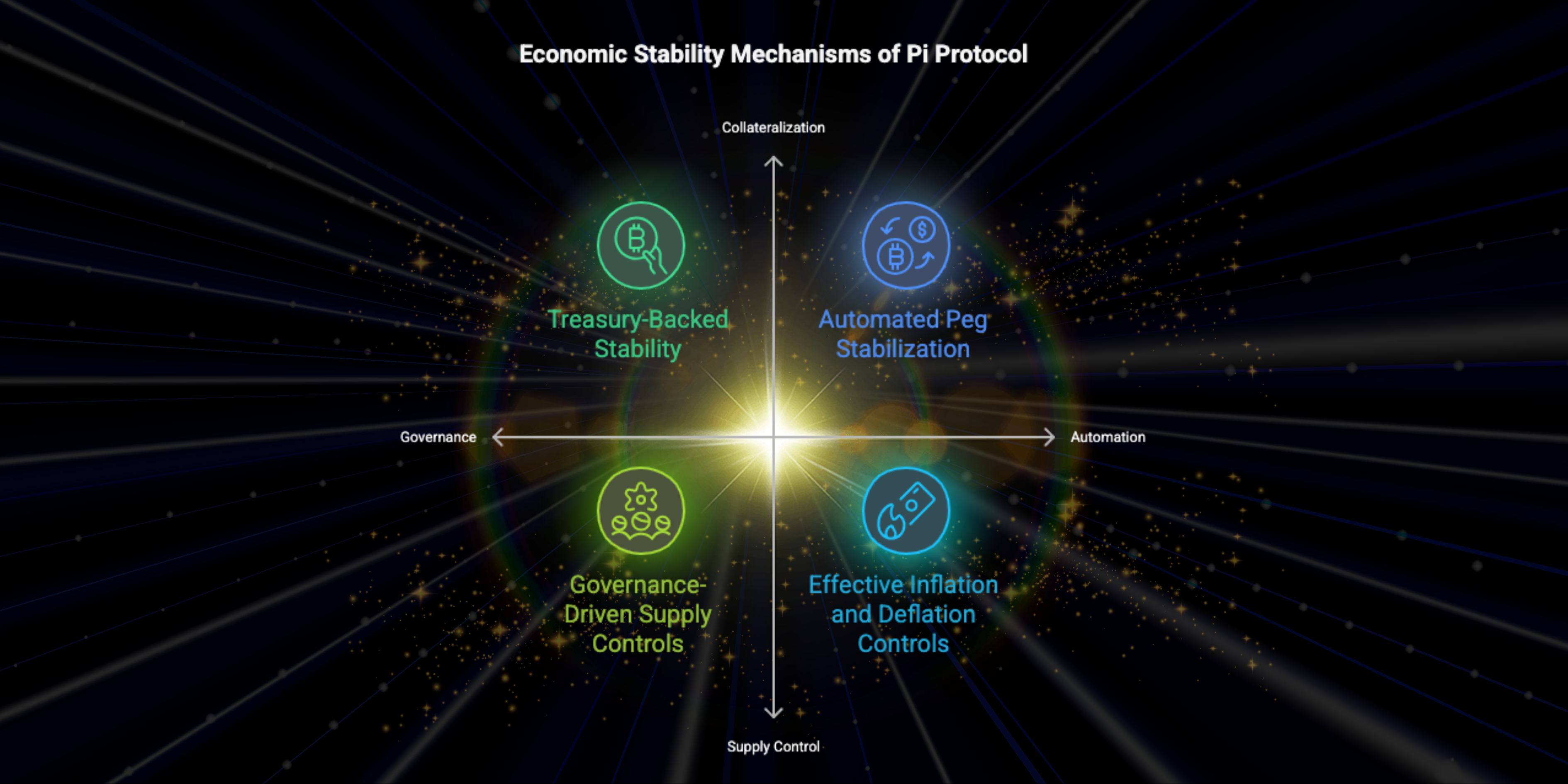 - The Liquidity and Minting Pool (LAMP) functions as an automatic stabilizer to manage inflationary and deflationary pressures.