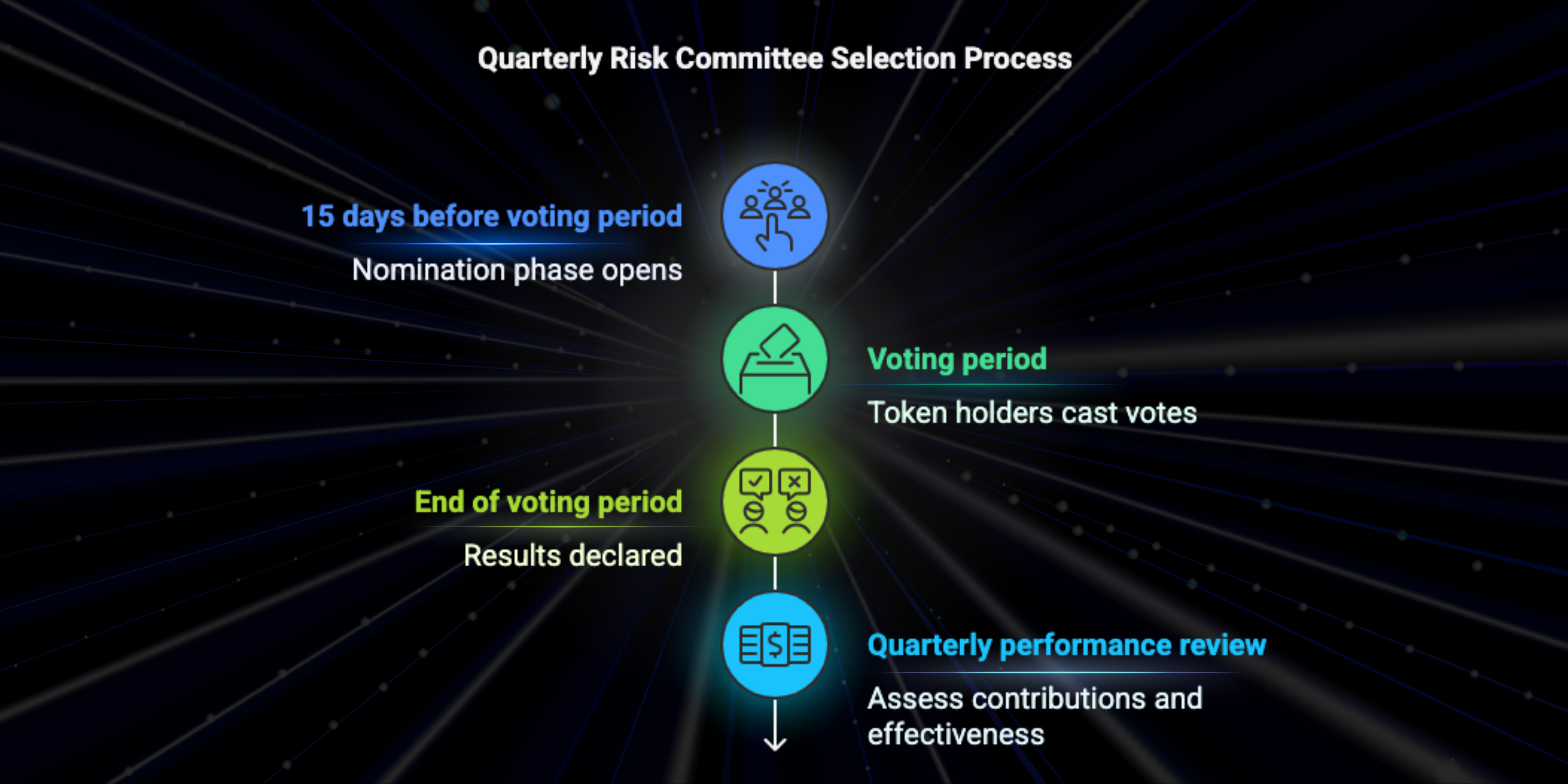 This quarterly voting cycle ensures that the Risk Committee remains composed of knowledgeable and reliable members while maintaining democratic oversight.